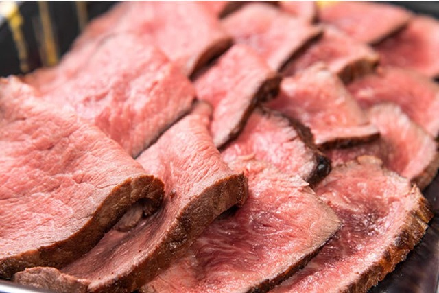 赤身と脂身のバランスが良い近江牛ローストビーフ。