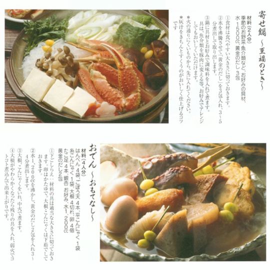 ◎黄金のだし「お料理帖」付き(A4サイズ1枚:両面カラー)付