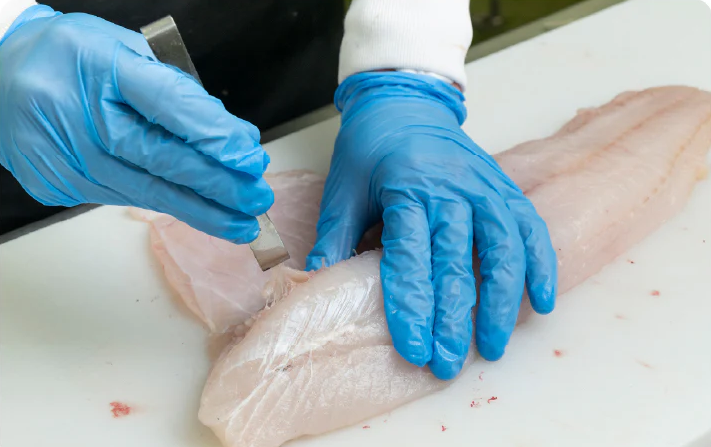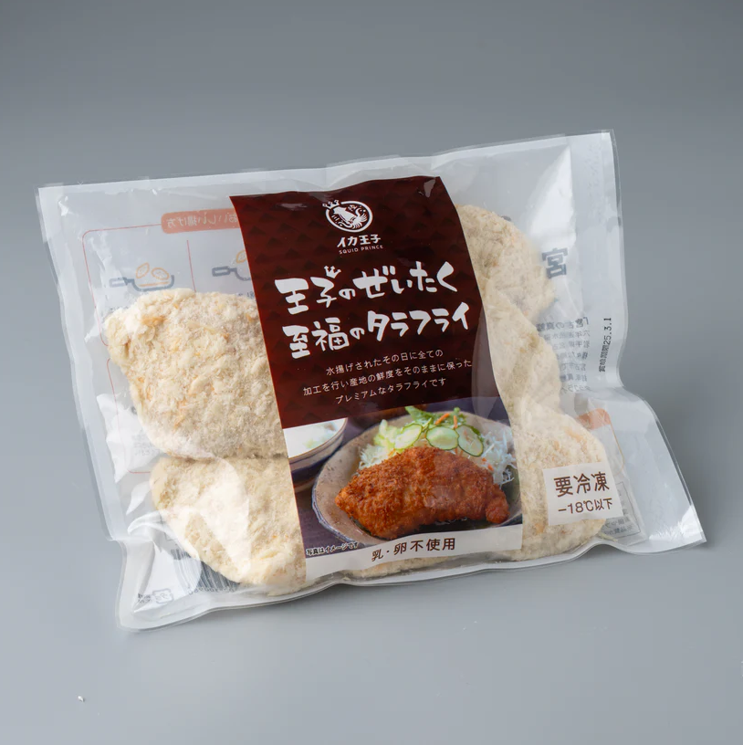 この「**王子のぜいたく至福のタラフライ**」は、その最高に新鮮な真鱈だけを原料に、水揚げされたその日のうちに、1枚1枚丁寧に手作業で骨を抜き、切身にして、パン粉を付け、急速冷凍しています。