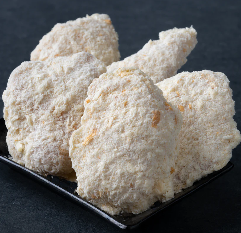 一般的な白身魚フライに使われる安価な魚の練り物とは全く違う、**本物の真鱈**だけをぜいたくに使った、まさに「至福」の逸品です。