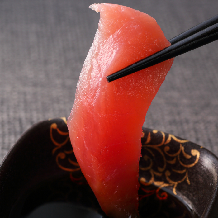 赤身は深い赤色で中トロや大トロに比べて脂が少ないです。