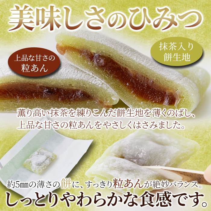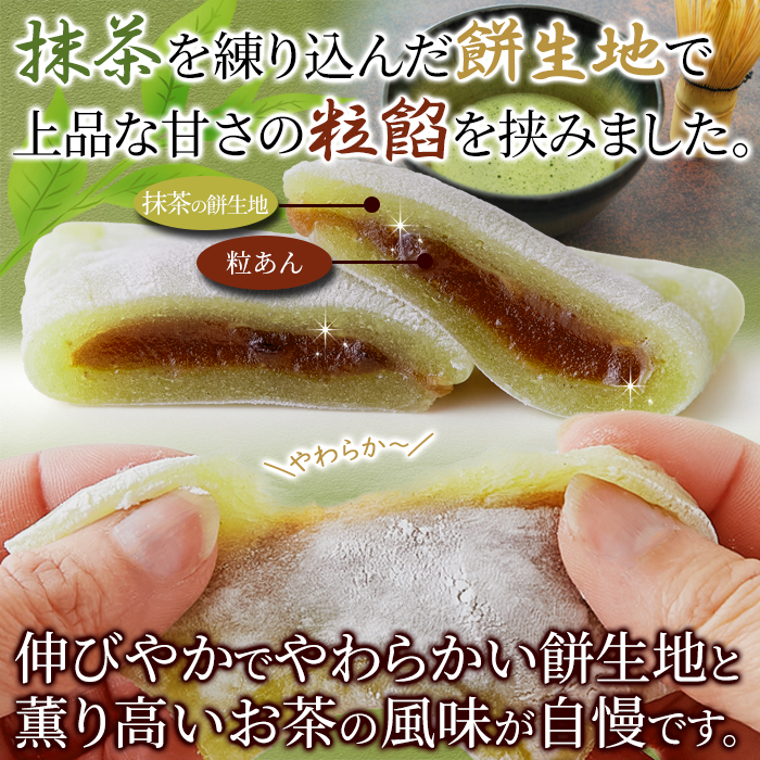 【ポスト投函】抹茶を練り込んだ餅生地で粒あんを包みました!!銘茶のしらべ10個