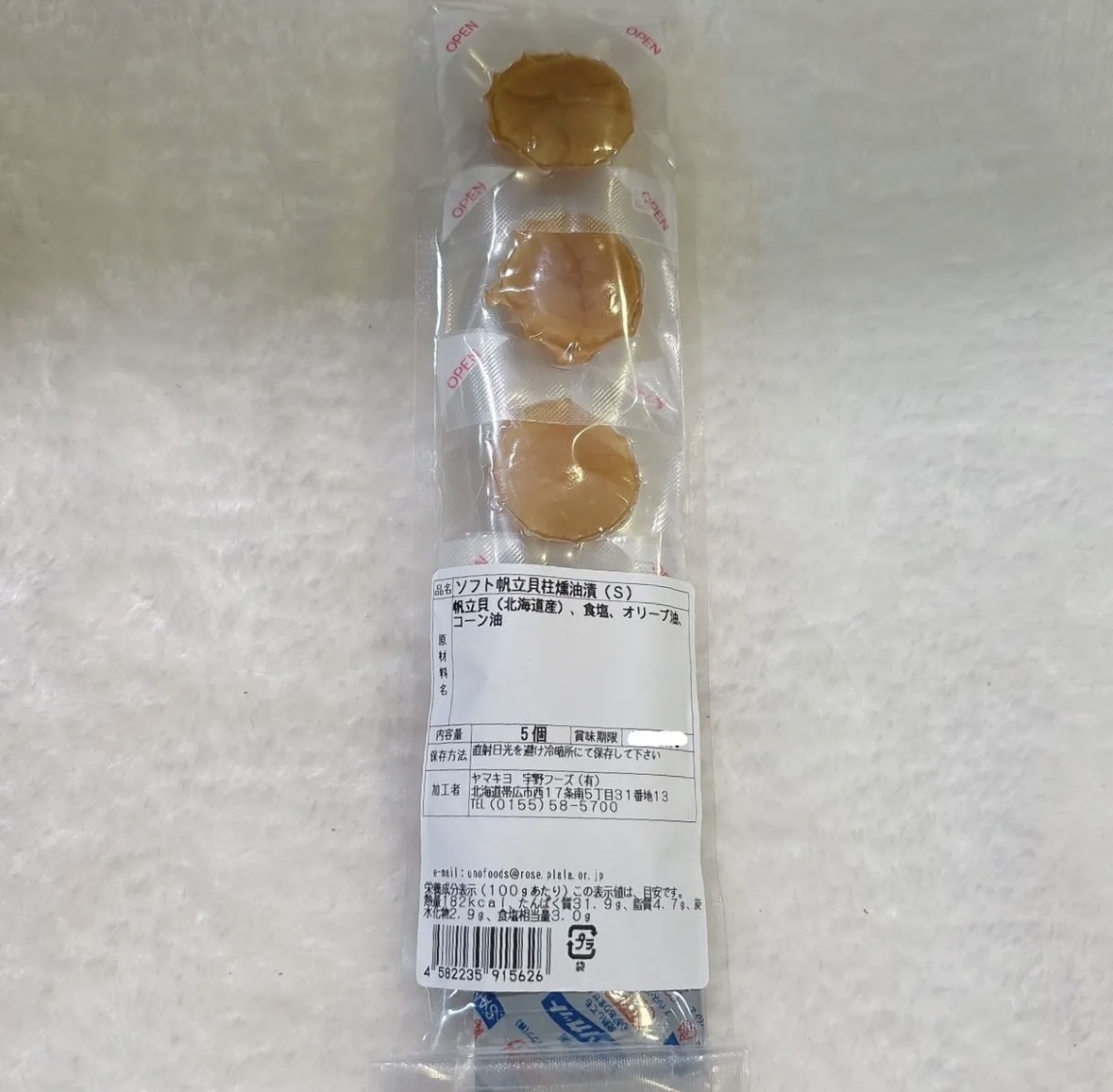ソフト帆立貝柱燻油漬け 5粒入り Sサイズ