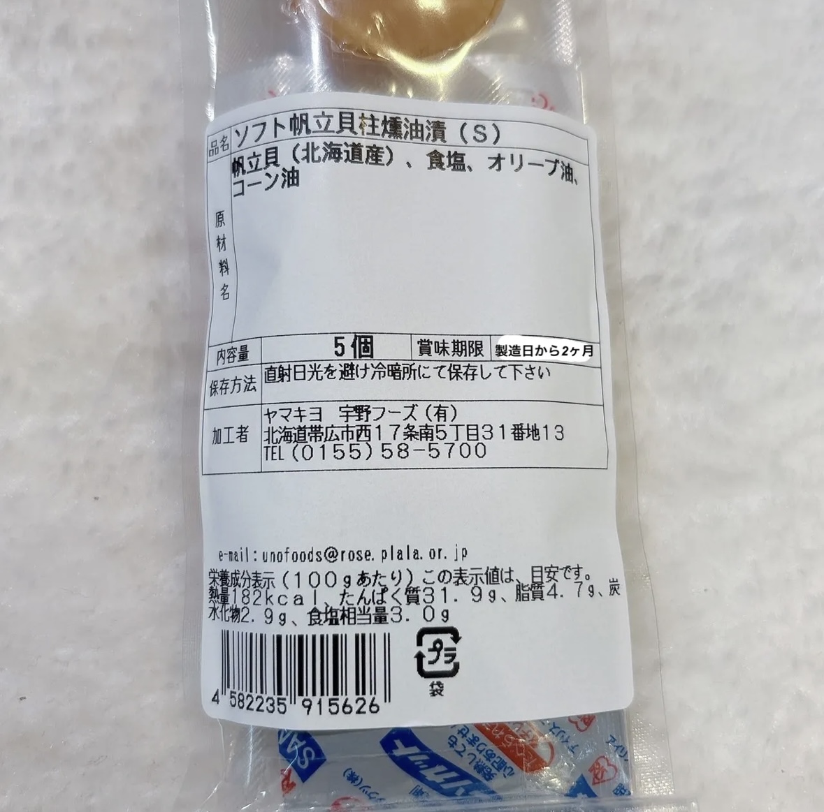 【ポスト投函】ソフト帆立貝柱 燻油漬け 5粒入り Sサイズ