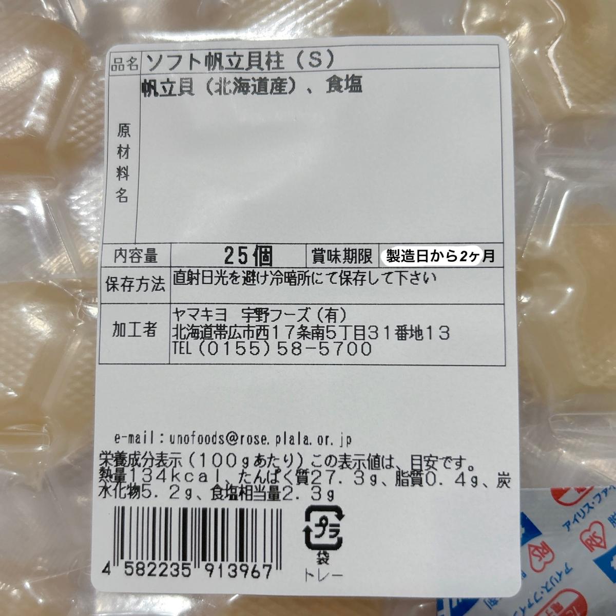 ソフト帆立貝柱 25粒入り Sサイズ