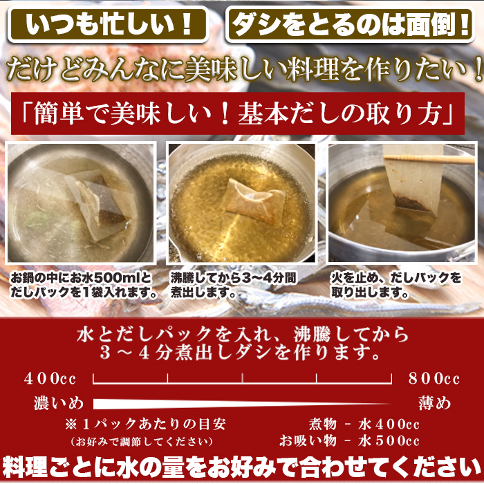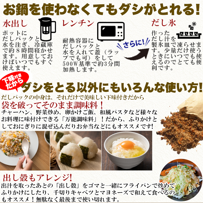 【ゆうパケット出荷】水出しOK・レンジでも簡単!「おだし」下味付きだしパック30包(5包×6袋)