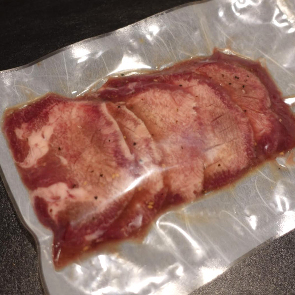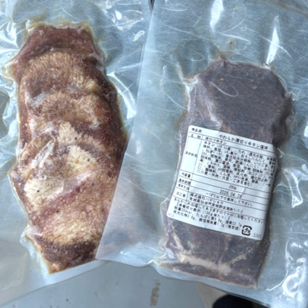 原材料:牛タン、たれ(還元水飴、米発酵調味料、食塩、レモン果汁、おろしにんにく、香辛料、ねぎペースト、蛋白加水分解物、いりごま、野菜エキス、植物油、寒天、乾燥大蒜)、みりん風調味料、、濃口醤油、食塩、砂糖/調味料(アミノ酸等)、キシロース、酒精、増粘剤(加工でん粉、キサンタン)、香料、ph調整剤、乳化剤、酸化防止剤(VC)、酸味料、くん液、クチナシ色素、酵素(一部に小麦・牛肉・大豆・ごまを含む)