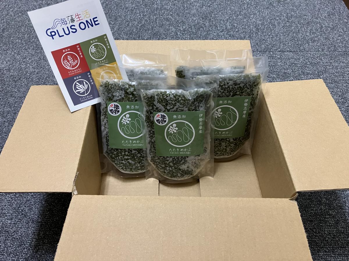 旬の時期に五十鈴川からの山の栄養と黒潮が混ざり合う栄養満点の伊勢湾で育った肉厚のめかぶは粘りも食感も抜群。海藻本来の風味も芳醇です。めんつゆやポン酢で味付けしてあったかいご飯にかけたりうどんやそばにかけて食べてもおいしくいただけます。また納豆とも相性がよくお味噌汁に入れていただいてもおいしく召し上がれます。