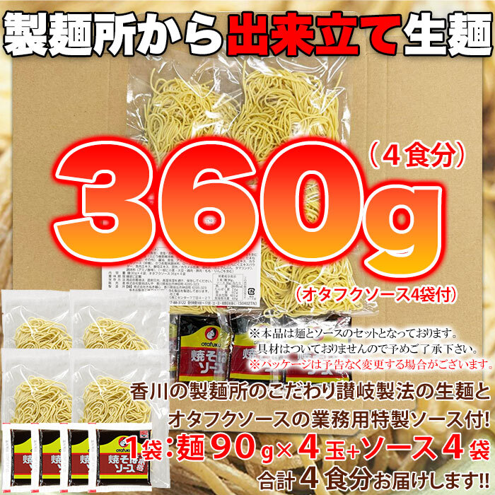 【ゆうパケット出荷】もちもち生麺×オタフクソースがクセになる!!焼きそば4食(90g×4)