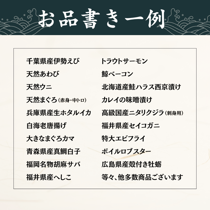 ●飲食店等に卸している業務用海鮮の中でカニの足折れや焼き魚のキズあり等の訳ありを含む場合がございます。