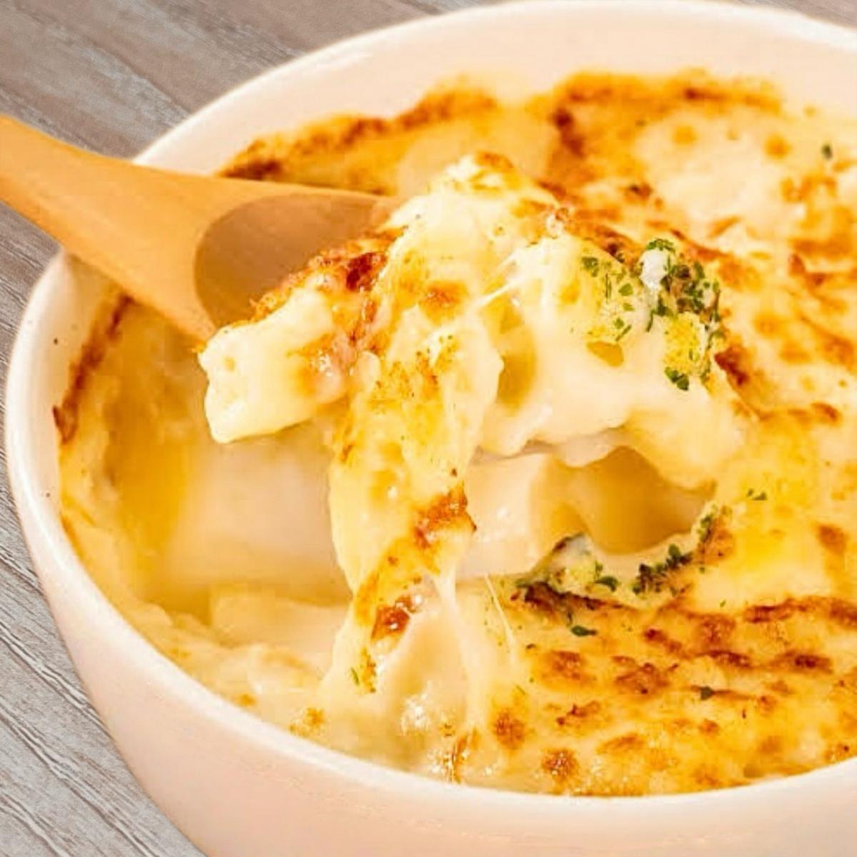 ●ホワイトソースとどこまでも伸びるような少し焦げ目の残る香ばしいチーズが絶品。