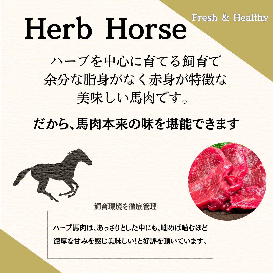 ●ハーブを中心に育てておりますので臭みがなく食べやすい馬刺しです。
