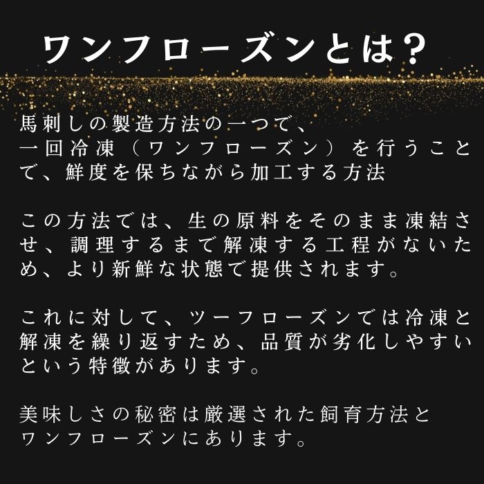 ●自然と調和する育成方法により、ストレスが無く、健康で質の高い肉質の馬肉を使用しております。