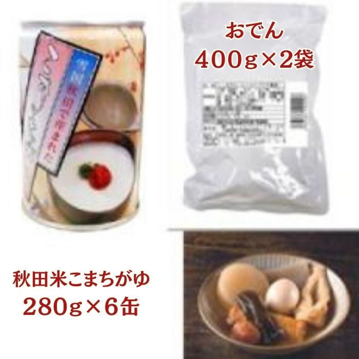 【おでん400g】大根(国産)、玉子、ごぼう巻、こんにゃく、竹輪、揚ボール、醤油、発酵調味料、昆布、魚介エキス、水飴、砂糖、食塩、酵母エキス/水酸化Ca、(一部に卵・小麦・大豆を含む)