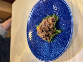 ●しぐれ煮は、柔らかく煮込まれたクジラの身が、甘辛いたれと絡まり、食欲をそそります。一口食べると、独特の旨みと香りが口いっぱいに広がります。